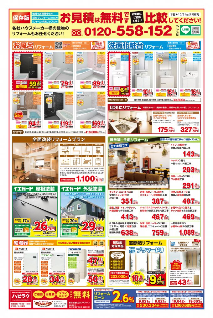 【水廻りリフォーム専門店のハピラク石巻】2025年10月最新定番チラシ!