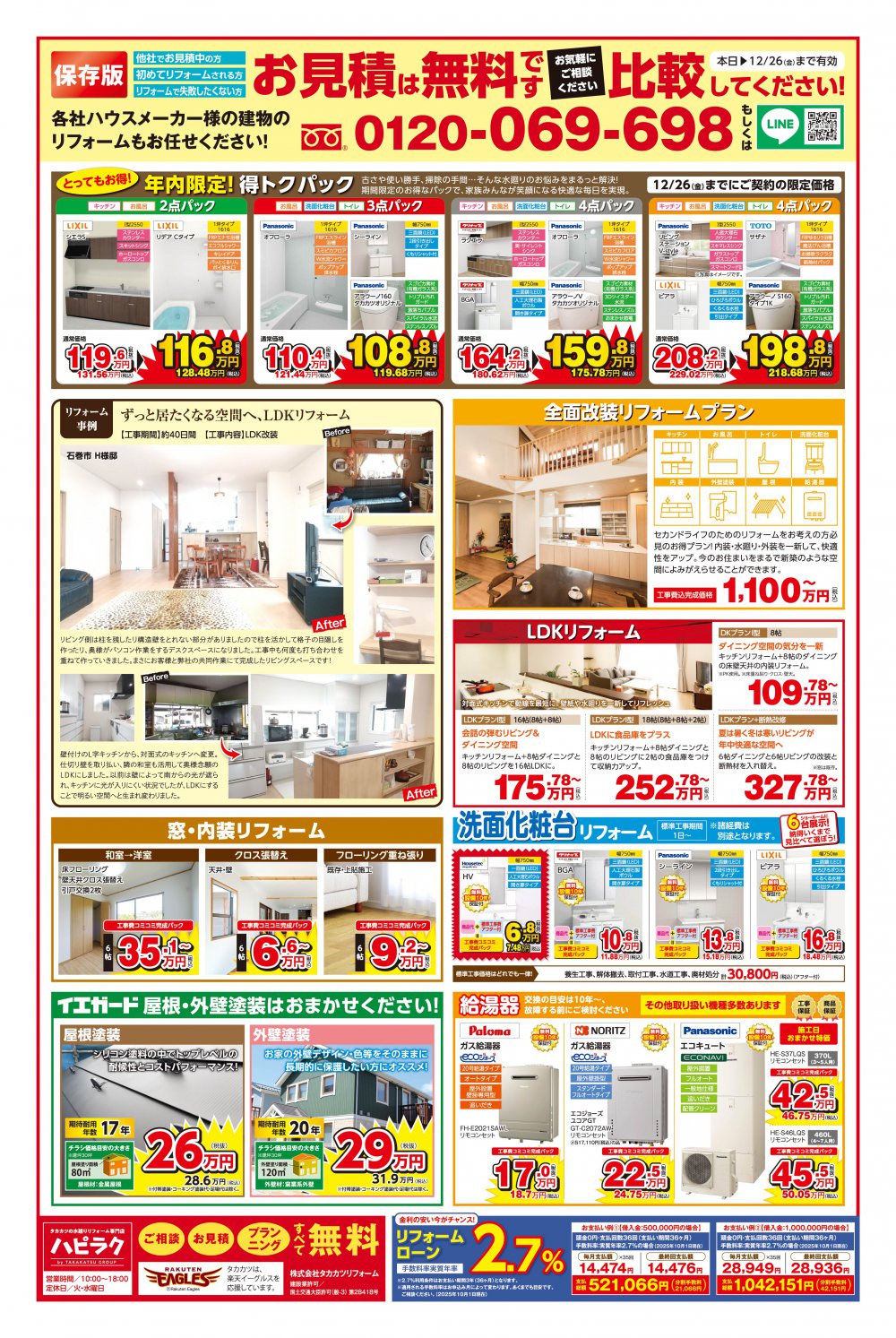 【水廻りリフォーム専門店のハピラク仙台中山】2025年12月最新定番チラシ!