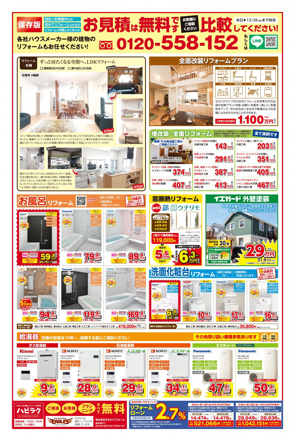 【水廻りリフォーム専門店のハピラク石巻】2025年12月最新定番チラシ!
