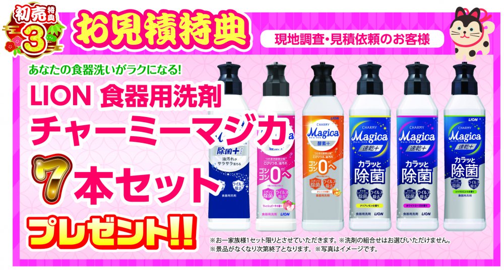 特典3 現地調査・見積依頼のお客様限定! LION 食器用洗剤「チャーミーマジカ」7本セット プレゼント!