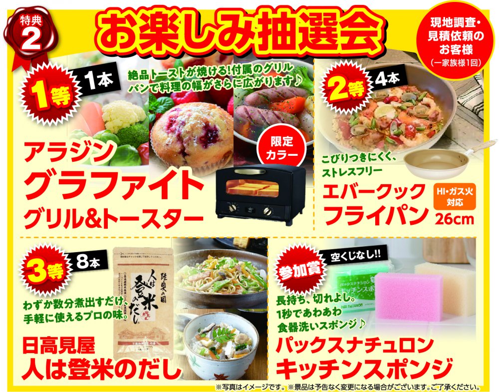 特典2 現地調査・見積依頼のお客様限定!お楽しみ抽選会