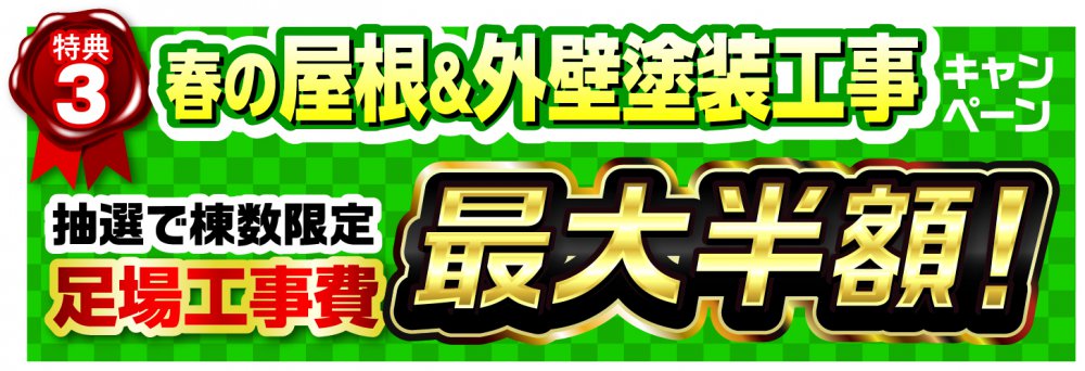 特典3 春の 屋根&外壁塗装工事キャンペーン 足場工事費最大半額!(抽選・棟数限定)