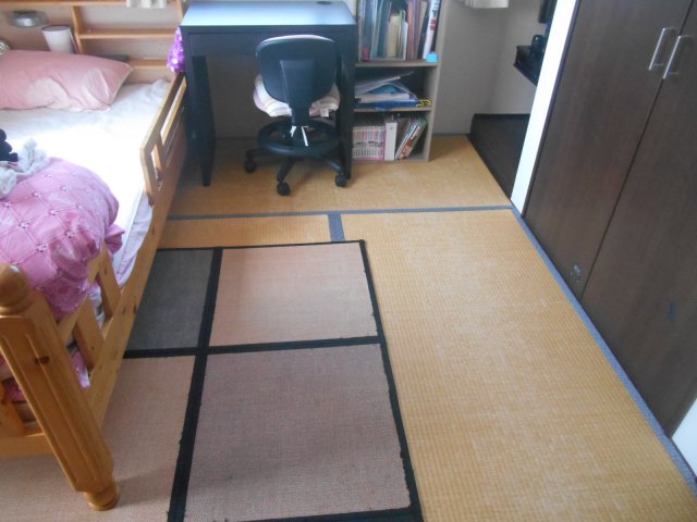 娘様のお部屋で、ベッドや机を置くのに畳のお部屋が不便に感じることがあり、フローリングに直しました。いつまでも大切に使ってほしいですね。