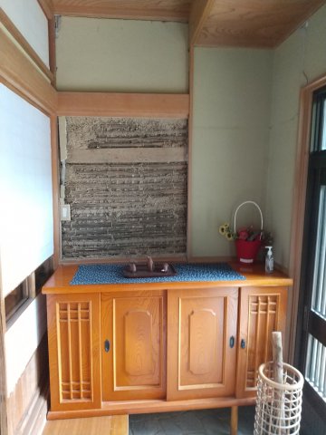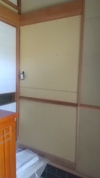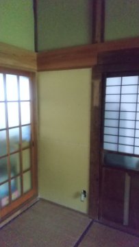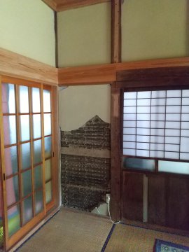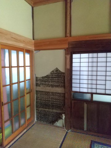 地震で土壁が落ちてしまっていましたが、補修して壁紙を貼りました。