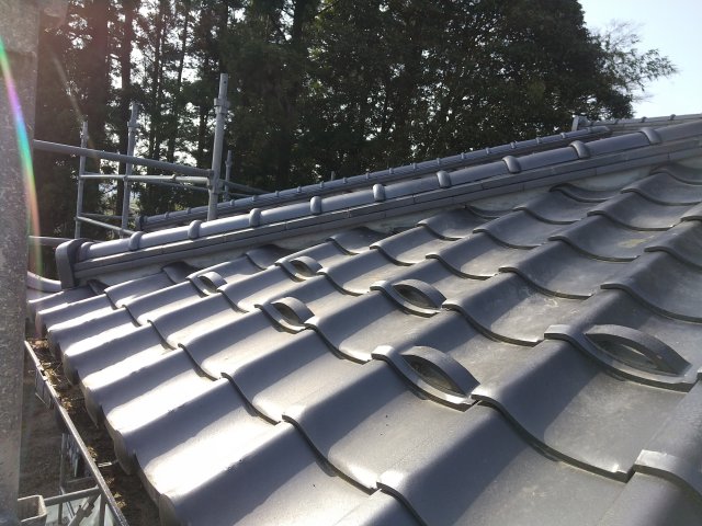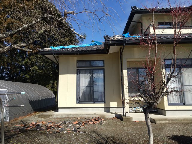 瓦修繕と内部壁の修繕工事をさせていただきました。いずれも補強材を入れたり施工を工夫し耐震性も高まるように施工いたしました。