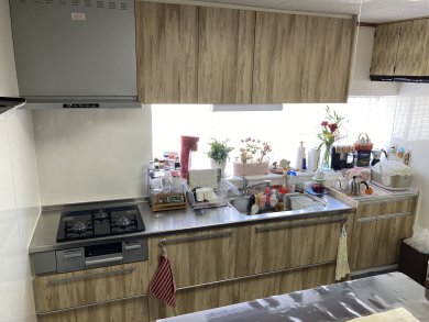 キッチン周辺をすべて新しくすることで、明るい空間に仕上がりました。