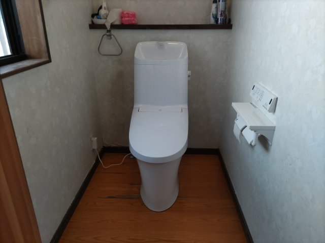 便座の故障をきっかけに便器ごとの交換をご希望されておりました。ご予算に合わせ、一体型のお掃除がラクラクおトイレをご提案させて頂きました。