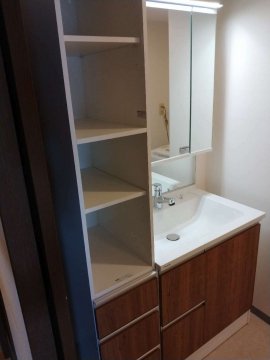 洗面化粧台は収納が増えてスッキリ使いやすくなりました。