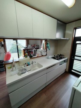 キッチンは展示品を入れました。白い面材が空間をより明るく、広く見せてくれます!