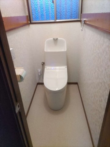 腰下までの壁張替えとクッションフロアの張替えをトイレ交換と同時にご依頼いただきました。