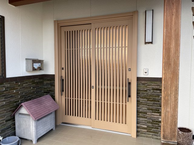 紫外線や経年劣化により、玄関戸の表面がはがれてしまっている状態でした。入替えに際し、遮視性の高いLow-Eガラスを採用。使い勝手はそのままに、機能性を向上いたしました。