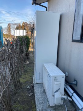 「そろそろエコキュートの寿命が近づいてきた」ということで、壊れる前に交換を行わせていただきました。計画的だったため、「お風呂に入れない日というのは無く、スムーズに工事できました。