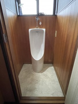 大便器と小便器それぞれの器具交換と床の張り替えを行いました。同居されているお父様を考慮し、日程を調整しながら施工を行わせていただきました。