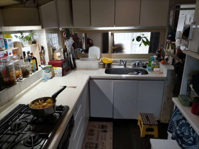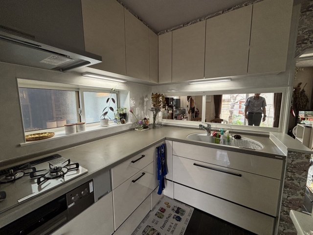 料理好きの奥様こだわりのキッチンリフォームです。収納を増やし、スッキリと使い勝手のいいキッチンになりました。キッチンをシンプルなデザインにしたことでおしゃれなアクセントクロスも映え、素敵な空間になりました。