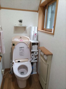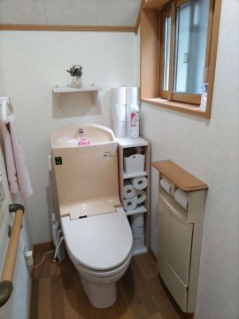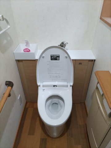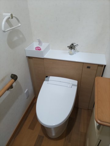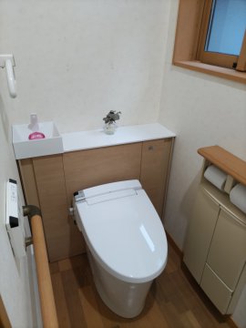 便器の後ろの掃除が大変ということで、キャビネット付きのトイレに交換させていただきました。ペーパーも収納するスペースもできて見た目もスッキリしました。