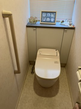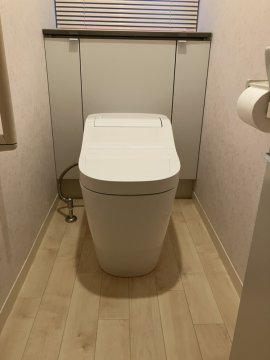 便器の色味とクッションフロアの色味がとても合っていて、空間が明るくなりました。施工させていただきありがとうございました。