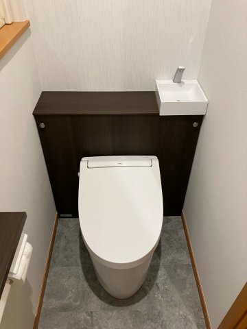 トイレ交換+内装工事を施工させていただきました。収納も見た目もスッキリして良かったです。