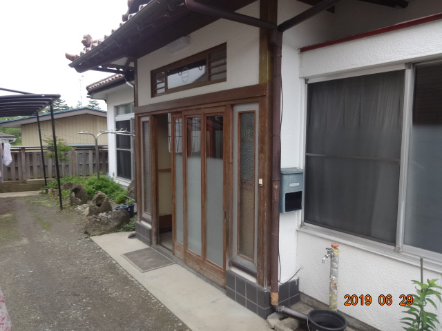 木製の玄関サッシをアルミサッシに交換しました。一部はあえて壁を作り断熱材を入れました。気密性が上がり冬も快適に過ごしていただけます。