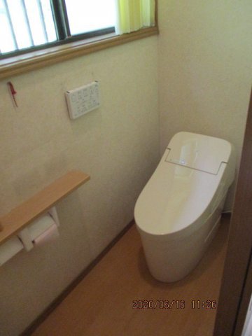 最初はトイレ交換のみを予定しておりましたが、床のクッションフロアも貼り替えることになりました。木目調のクッションフロアで空間によく馴染みました。