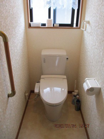 今回はトイレ交換工事と床クッションフロア張替え工事をさせていただきました。床の色をご夫婦で悩まれていましたが、工事が終わってみると照明や壁に合った色で、大変ご満足いただけました。