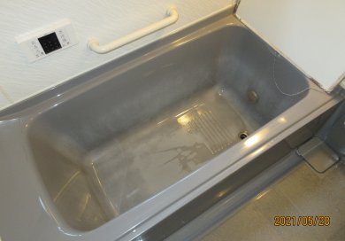 濃灰色のシックな浴槽から、白基調の明るい物へ変更。