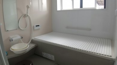 タイルの浴室からユニットバスに改装し、合せて洗面脱衣室の改装とサッシ交換、給湯器の交換をさせて頂きました。