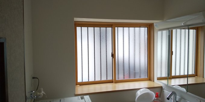 洗面台、窓を入れ替えて