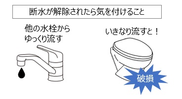 断水復帰後の使用上の注意点としてエアーハンマー現象があり、