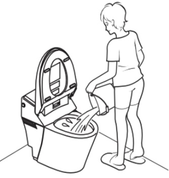 洗浄後にニオイ防止のために3~4リットルほどの水を便器にゆっくり流してください。