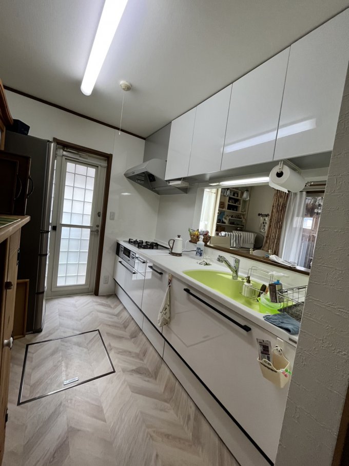 工事完了後に実は黄緑色のまな板をはじめ、緑色が好きなことも発覚(笑)