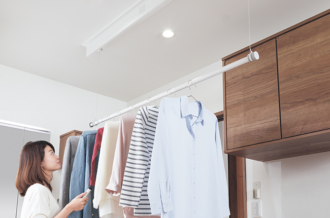 ③洗濯物をかけたら天井近くまで上げて空間活用