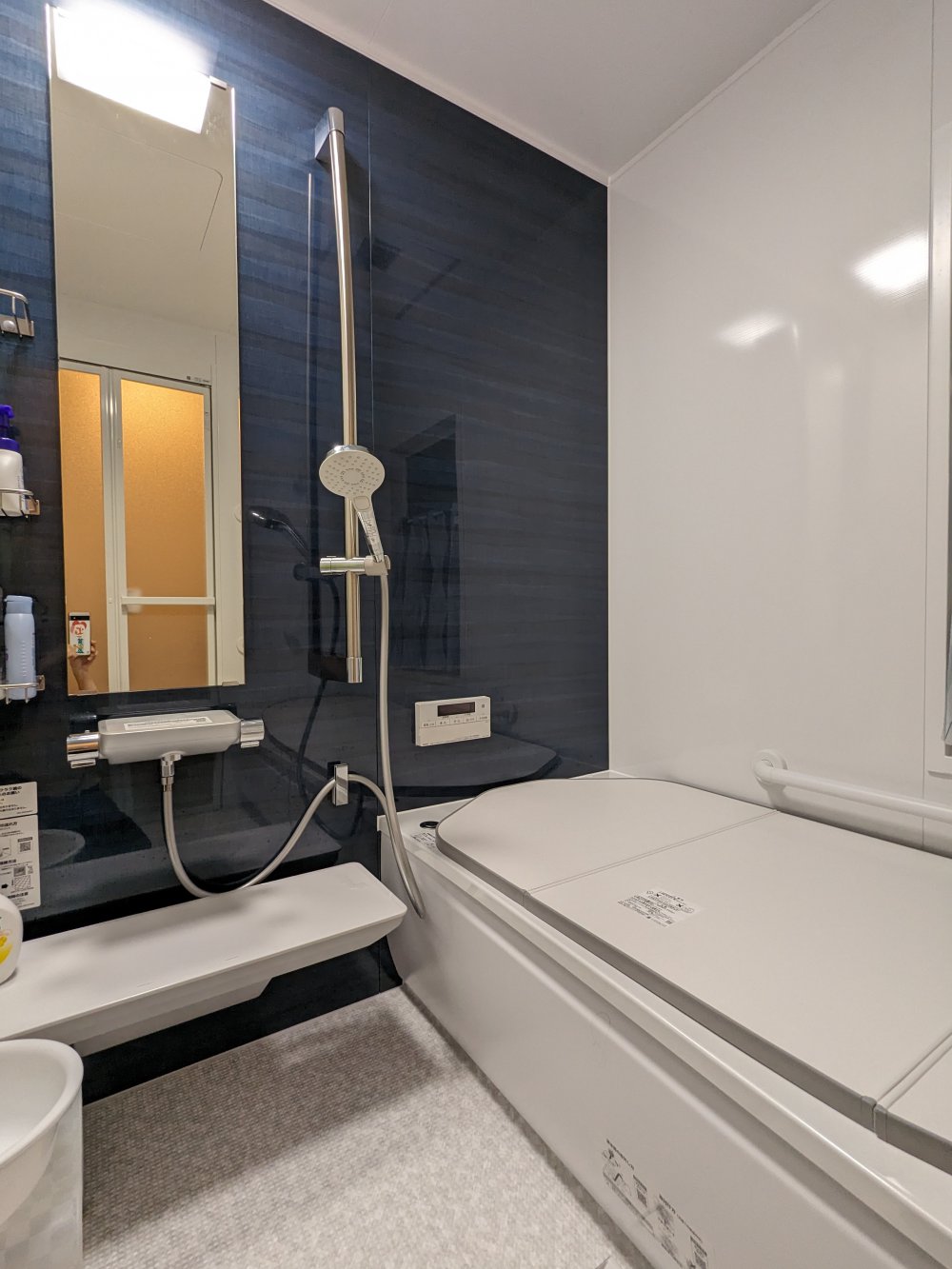 お風呂のアクセントパネルはセイラン(藍染)を選ばれたり、