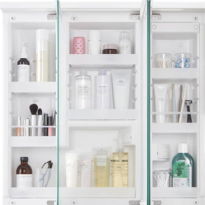 POINT③【3面鏡・LED】鏡の裏が収納スペース。