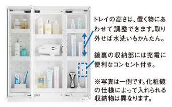鏡裏がすべて収納になっていて日常的に使うものを収納すると便利です