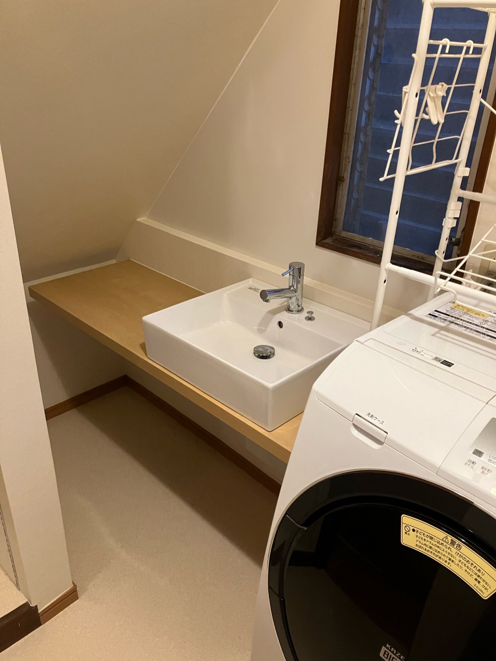 ちょっと暗い雰囲気もありまして、洗面室を一新する流れになりました。